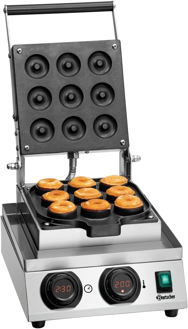 Bartscher Waffeleisen MDI Donut 900 - Donutmaker für 9 Donuts Durchmesser 50 mm, Edelstahl, mit Timer und digitaler Temperaturanzeige, für Gastronomie
