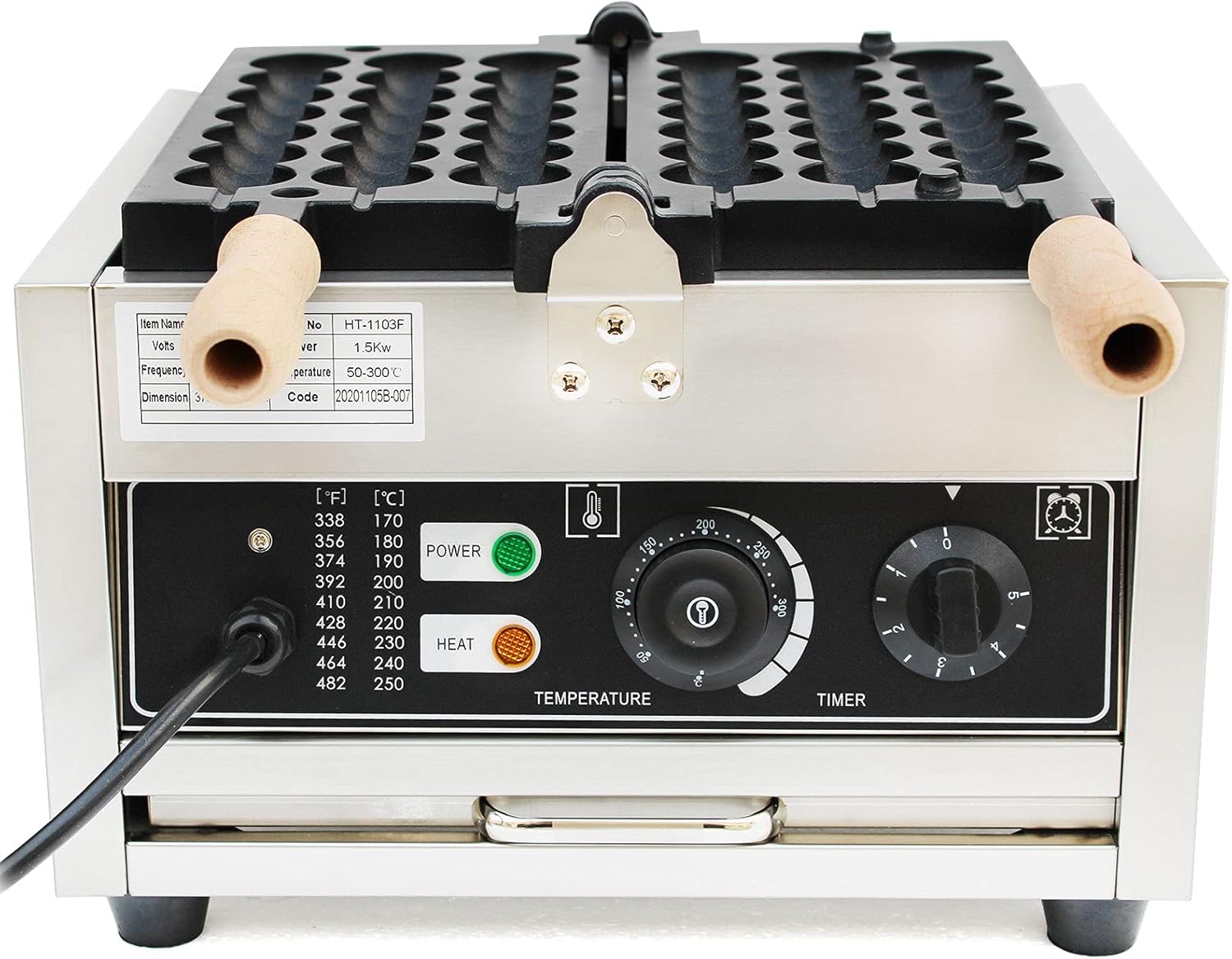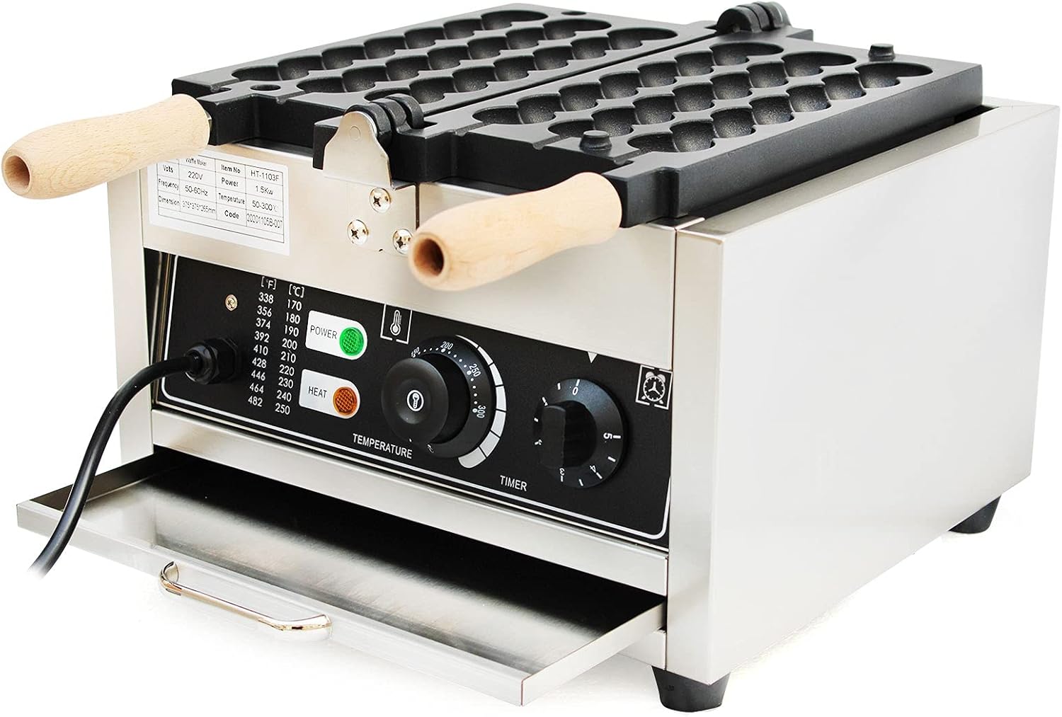 1500W Bubble-Waffeleisen Edelstahl-Waffeleisen kommerzielles Bubble-Waffelkugelmacher mit einstellbarer Temperatur von 50-300 °C für Restaurants und Kantinen, 37,5 x 33 x 22,5 cm