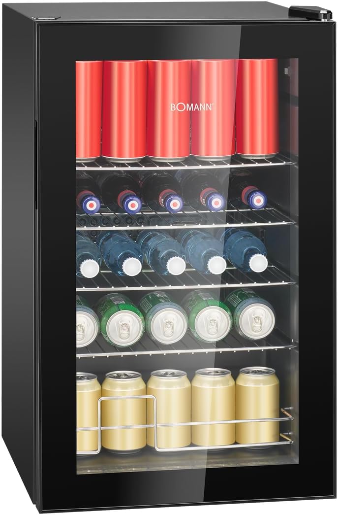 Bomann Getränkekühlschrank 63 Liter stufenlos regelbar +3-10°C Flaschenkühlschrank mit Glastür, 4 Ablagen und LED-Beleuchtung leise, energieeffizient und kompakt für Flaschen und Dosen KSG 7287