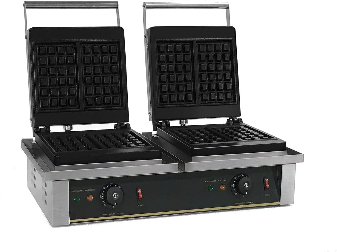 GastroHero Doppel-Waffeleisen für 4 Belgische Waffeln I doppelwaffeleisen mit getrennt regelbaren Backplatten I Gastronomie Waffel Maker für Restaurants und Cafes